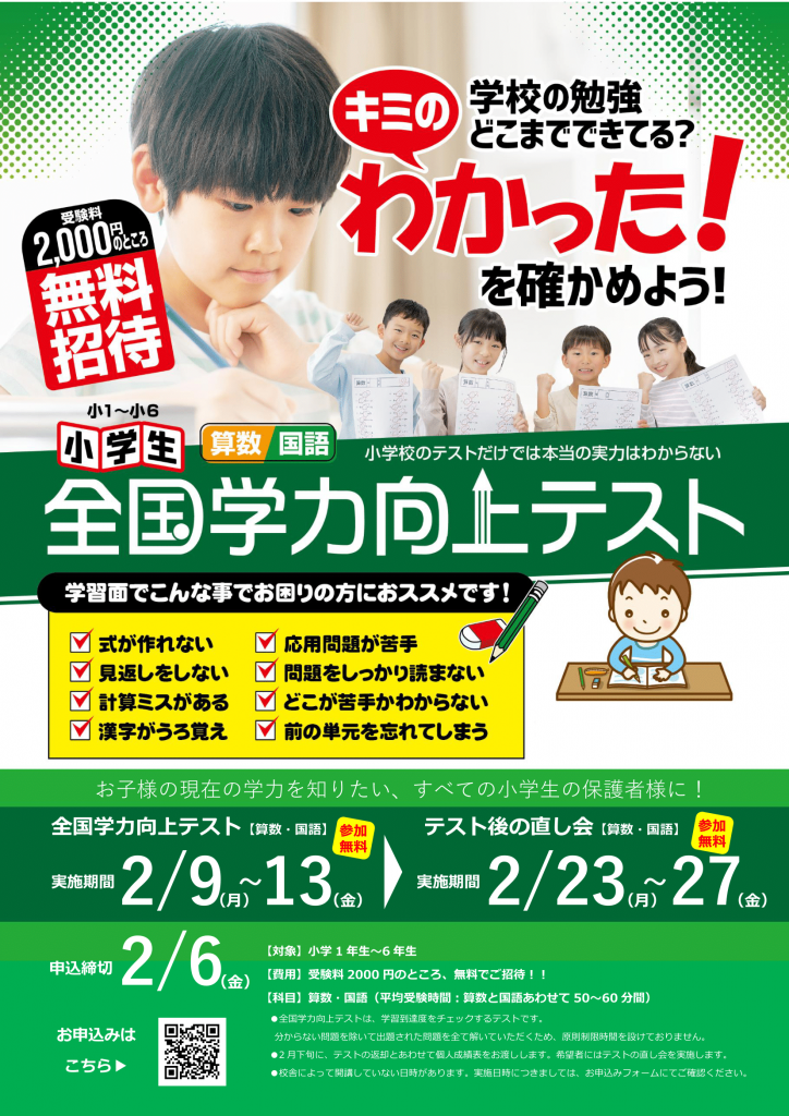 ぜひこの機会にお子様の現在の実力を見てみませんか?