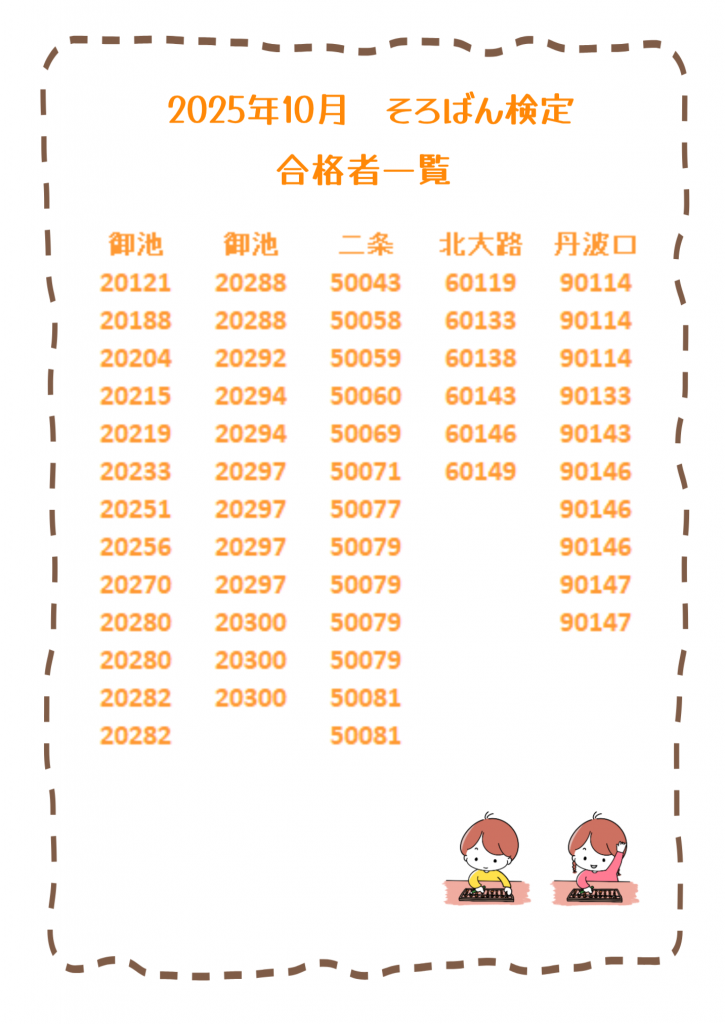 【キッズ部】そろばん10月検定 合格発表 - 学進館