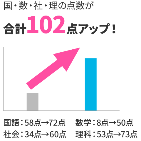 塾で勉強方法や分からないところを先生に一対一で聞けて、いろいろ試行錯誤をしながら家でも勉強に取り組んだらテストの結果に出たので嬉しかったです。模試の偏差値もはじめのころから10以上上がってて、実力がついているなと感じられているので嬉しいです。